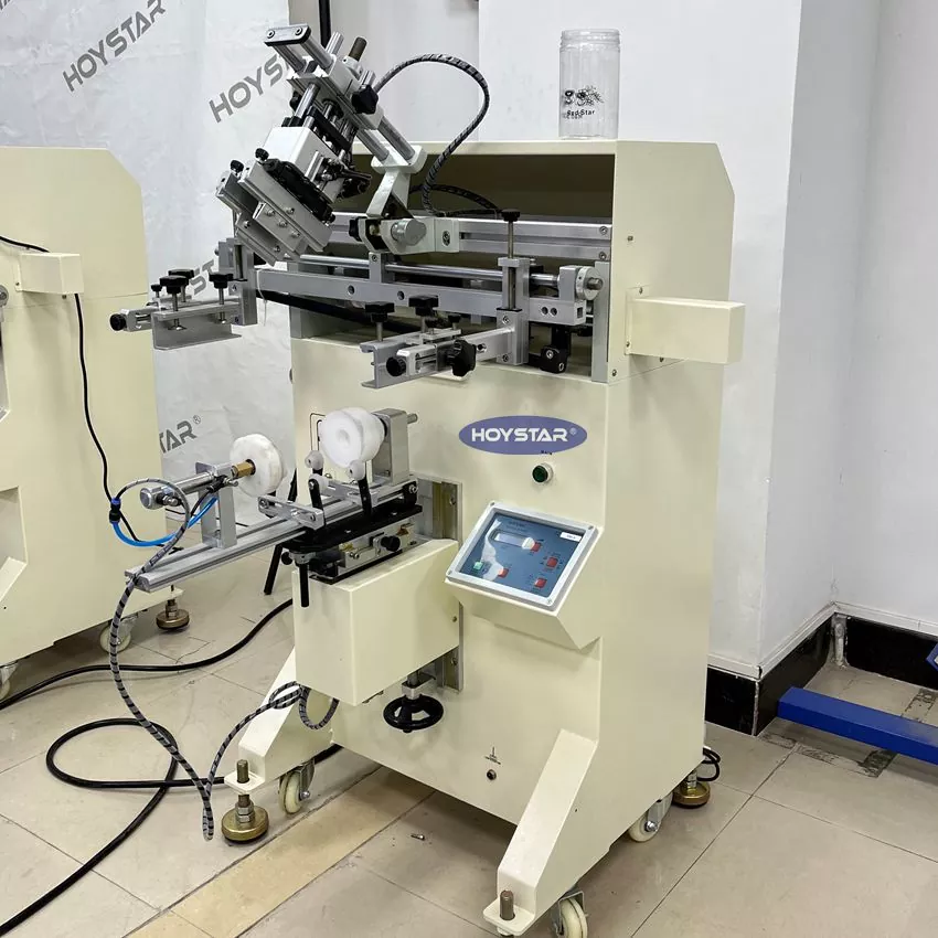 Як професійний виробник у Китаї, ми хотіли б надати вам високоефективний кольоровий трафаретний принтер HOYSTAR 1 для циліндричних виробів, високошвидкісний друк зі стабільною якістю та низьким рівнем шуму. Він призначений для друку на різних вигнутих поверхнях, включаючи контейнери для косметики, пляшки, чашки, харчові упаковки та подібні продукти. Компактний дизайн, широкий спектр застосування та доступна ціна.