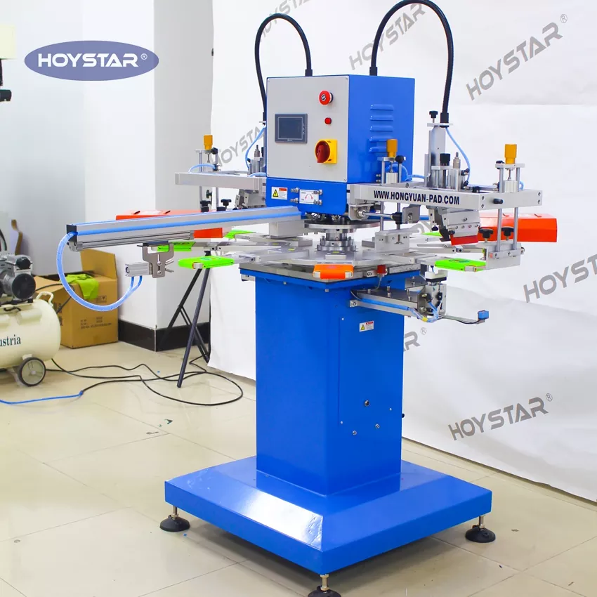 HOYSTAR є надійним виробником і постачальником у Китаї; Ця 2-колірна автоматична машина для охолодження банок Koozies HOYSTAR підходить для харчової та пакувальної промисловості, спеціалізується на охолоджувачах для банок, ця автоматична машина трафаретного друку повністю автоматизує весь процес двостороннього друку. Від завантаження до друку, сушіння, повороту на 180 градусів, друку другої сторони та остаточного вивантаження