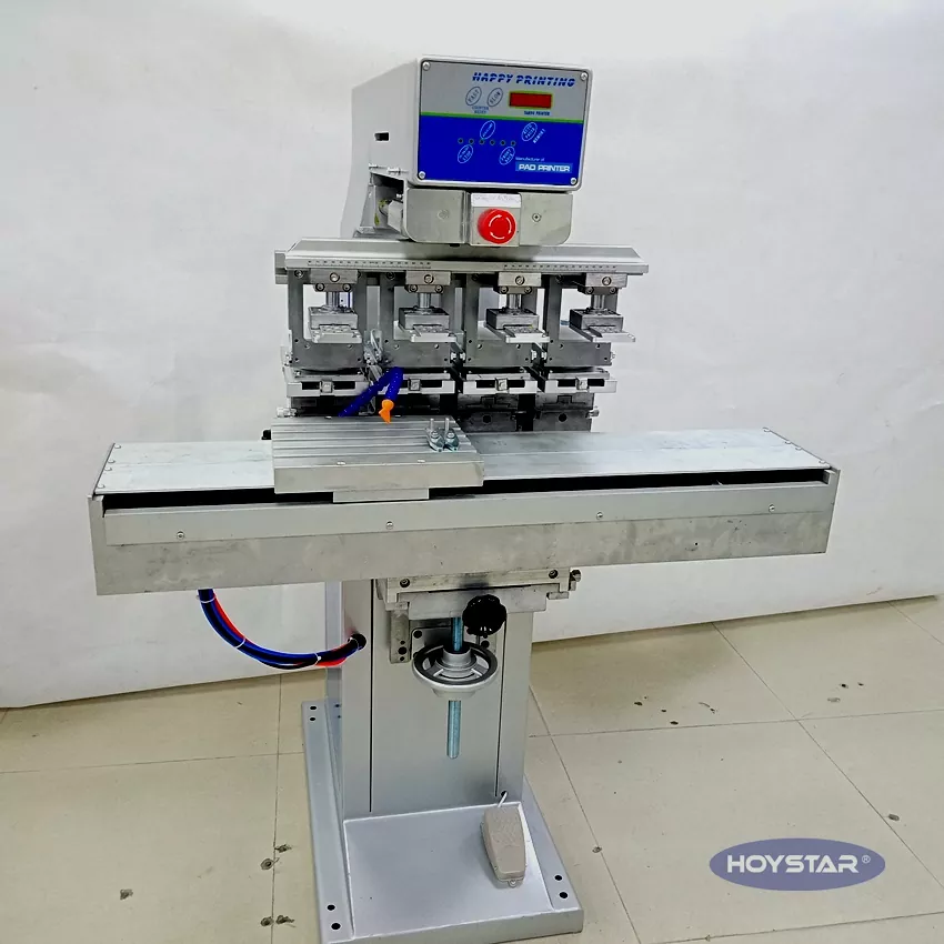 Як професійний виробник у Китаї, ми хотіли б надати вам високоефективний 4-кольоровий тампонний принтер HOYSTAR із робочим столом для обкладинки. Наші машини використовують ПЛК і сенсорний екран і підходять для друку різних продуктів. Машина відрізняється конкурентоспроможною ціною, невеликою площею та стабільною якістю друку.
