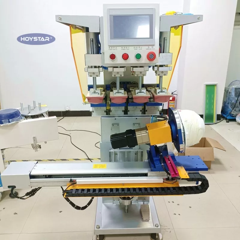 Купуйте індивідуальну 4-кольорову тампонну друкарську машину для шолома від Dongguan Hoystar Machinery Co., Ltd., яка є одним із виробників і постачальників у Китаї. Ця 4-колірна тампонна друкарська машина HOYSTAR для шолома оснащена сенсорною панеллю керування PLC, яка проста в експлуатації. Ця машина оснащена сервоприводом для автоматичного ротаційного друку, пропонуючи варіанти друку на 1, 2 або 4 сторонах шолома. Робочий стіл пересувається вліво/вправо, поворотний кут, можна регулювати висоту продукту. Кожна друкуюча головка регулюється незалежно та може бути налаштована окремо.