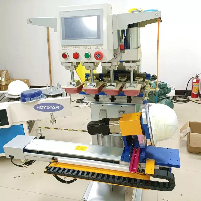 Як професійний виробник у Китаї, ми хотіли б надати вам високоефективну 4-кольорову тампонну друкарську машину HOYSTAR для шолома, яка спеціально розроблена для друку на захисних шоломах. Наша машина повністю автоматична, оснащена автоматичною подачею, автоматичною плазмовою обробкою, автоматичним друком, автоматичною сушкою та автоматичним розвантаженням. Машина дуже проста в експлуатації та має стабільну продуктивність друку.