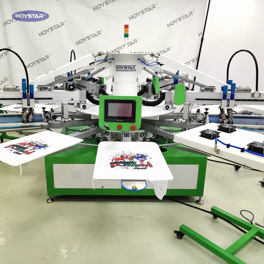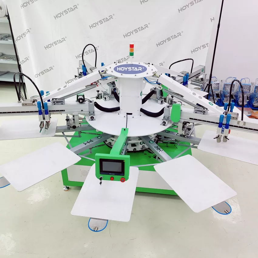 Ця 4-кольорова друкарська машина для трафаретного друку текстильних футболок HOYSTAR розроблена спеціально для поліграфічної промисловості. Оснащений інтелектуальним мікропроцесором, сенсорним екраном і системою з двигуном, він забезпечує високу стабільність друку та похибку реєстрації кольорів у межах ±0,1 мм, значно покращуючи точність і послідовність друку. Підходить для різних застосувань друку, таких як футболки, одяг, етикетки та тканини. Цей автоматичний трафаретний принтер є ідеальним рішенням для високоточної та ефективної поліграфічної продукції.