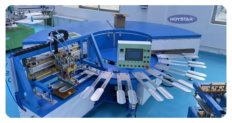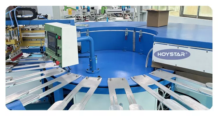 Як професійний виробник у Китаї, ми хотіли б надати вам високошвидкісну машину для трафаретного друку протиковзких шкарпеток HOYSTAR. Наші машини використовують ПЛК і керування сенсорним екраном і в основному використовуються для друку різних типів шкарпеток. Машина оснащена сушильною піччю, яка може добре висушити силікон і чорнило.