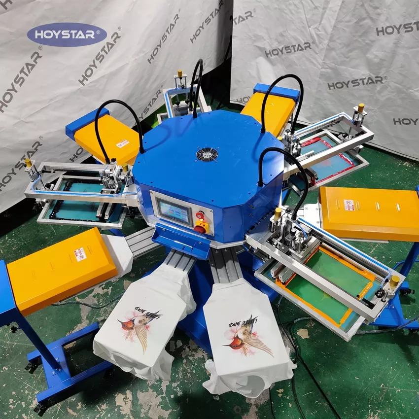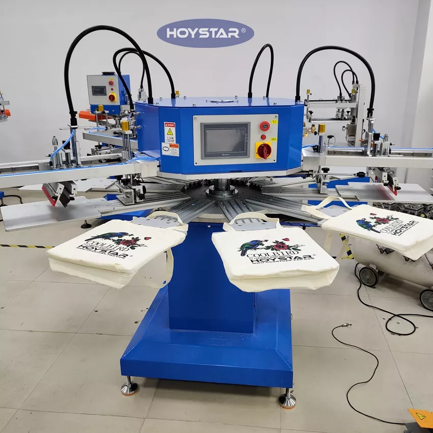 Будучи професійним виробником і постачальником, ця автоматична 4-кольорова машина для трафаретного друку футболок HOYSTAR розроблена спеціально для текстильної промисловості. Завдяки вражаючій продуктивності до 1200 штук на годину можна підвищити ефективність виробництва. Дизайн для друку тегів, етикеток і сумок на одязі може змінювати пристосування для друку різних типів продукції. Машина оснащена поворотним робочим столом, який забезпечує швидке та зручне завантаження та розвантаження, мінімізуючи час простою та максимізуючи продуктивність.