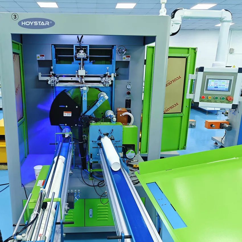 Як професійний виробник у Китаї, ми хотіли б надати вам високоефективну повністю автоматичну машину трафаретного друку багатоколірних пластикових стаканчиків HOYSTAR, високоефективне рішення для трафаретного друку, розроблене для конкретних сценаріїв – нашу спеціалізовану повністю автоматичну машину трафаретного друку для чашок. Ця машина призначена для друку на чашках і має повний повністю автоматичний робочий процес: автоматичне завантаження, автоматичний друк, автоматичне вивантаження та світлодіодне ультрафіолетове затвердіння. Значно зменшує витрати на оплату праці, а також мінімізує помилки під час друку, забезпечуючи стабільні результати друку в масовому виробництві.