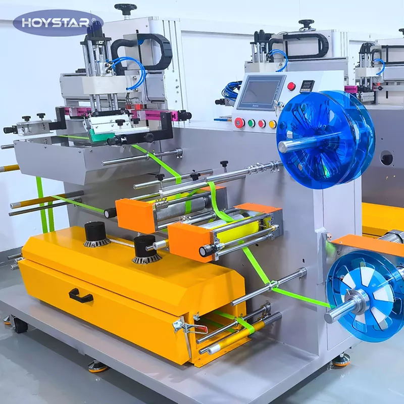 HOYSTAR є надійним виробником і постачальником у Китаї; Ця машина трафаретного друку Roll To Roll HOYSTAR призначена для друку на різних стрічках. Режим подвійної котушки забезпечує стабільну подачу та плавне виробництво. Управління сенсорним екраном PLC, зручний інтерфейс для безпечної та інтуїтивно зрозумілої роботи. Двошарова сушильна піч із циркуляцією гарячого повітря може швидко та рівномірно висушити фарбу.