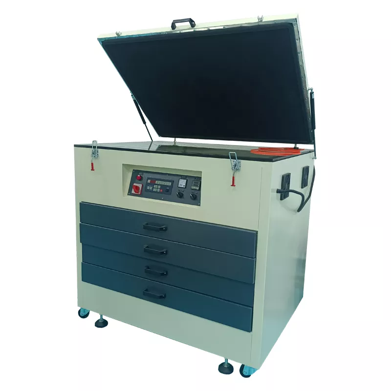 Машина для ультрафіолетової експозиції є ключовим обладнанням для перенесення візерунків на рамку екрана. Вони використовують ультрафіолетове випромінювання для затвердіння світлочутливої емульсії на рамці екрану та створення точних шаблонів на основі креслень дизайну.